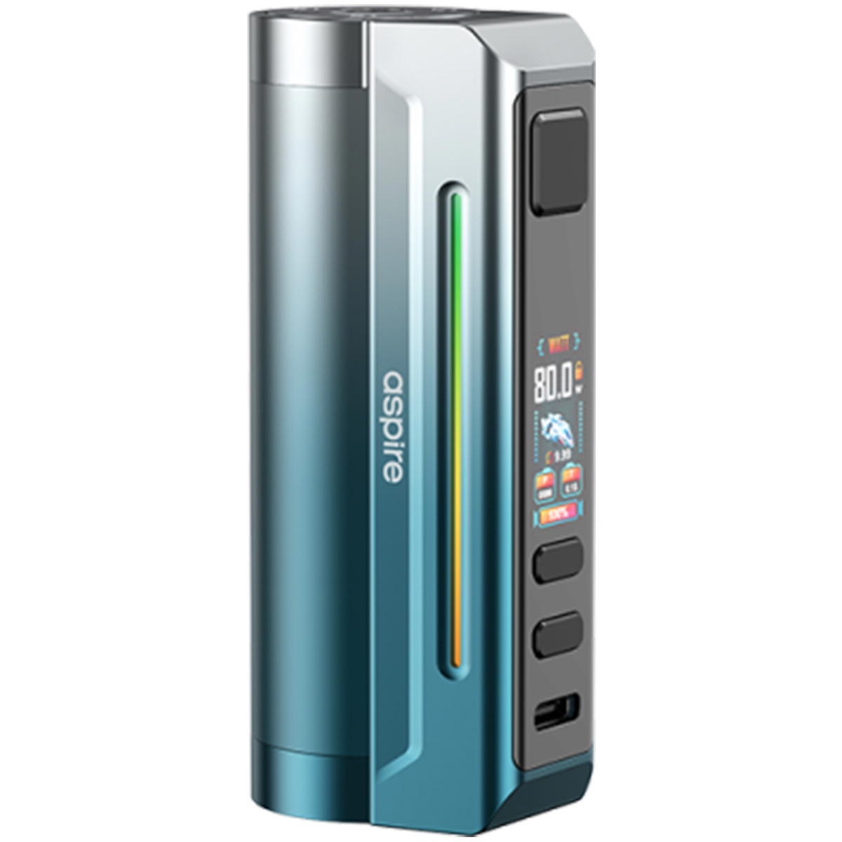 Das 0.96 Zoll TFT-Farbdisplay liefert gestochen scharfe Informationen zu Leistung, Modus, Widerstand, Zugdauer und Akkustand (in Prozent). Zwei vertikal verlaufende RGB-LED-Strips an den Seiten sorgen für dezente Lichteffekte, die über das Menü individuell anpassbar sind. Damit wird der Zelos X80 nicht nur zum technischen, sondern auch zum visuellen Highlight jedes Setups.
