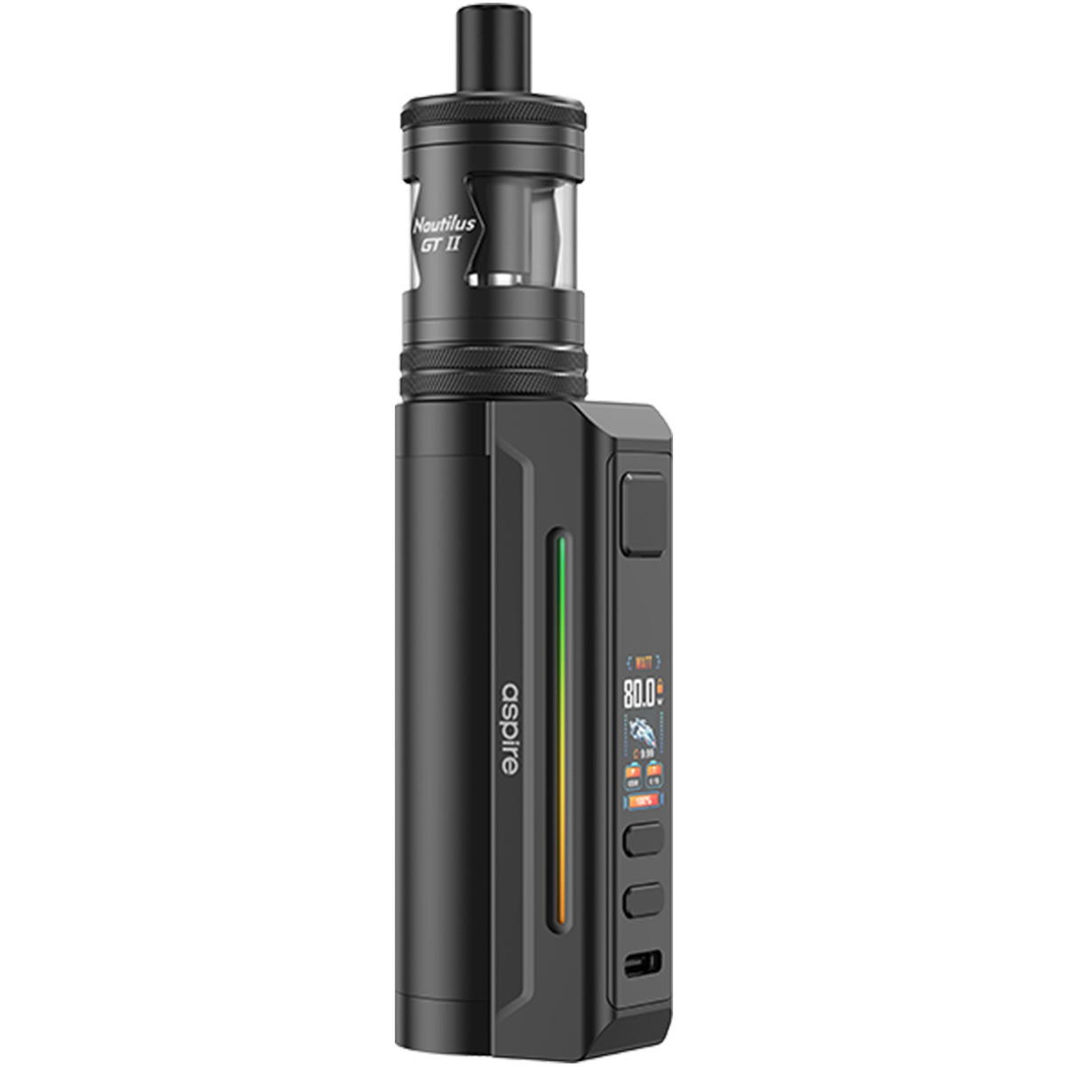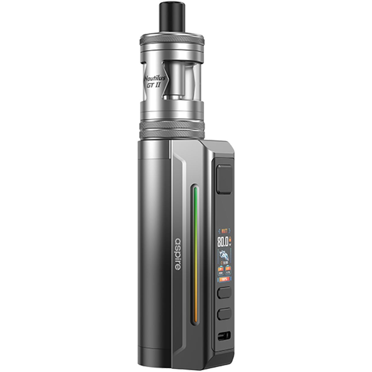 Der im Kit enthaltene Aspire Nautilus GT II Tank steht für geschmacksintensives Dampfen auf höchstem Niveau. Aus Edelstahl und Borosilikatglas gefertigt, überzeugt er mit 4.5 ml Tankvolumen, komfortablem Top-Fill-System und einer präzise einstellbaren Bottom-AFC. Das ikonische Tank-Shield gewährt 360°-Sicht auf den Liquidstand und schützt gleichzeitig das Glas.