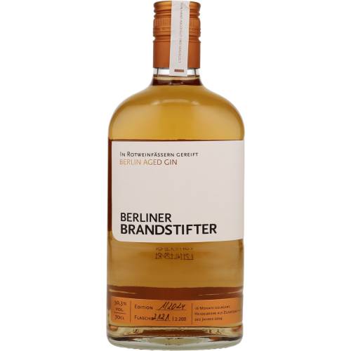 - Berliner Brandstifter Aged Gin 2024 Edition: Exklusive Sonderedition mit nur 2.200 Flaschen weltweit. Die 16–monatige Reifung in Bordeaux–Rotweinfässern sorgt für eine rötliche Bernsteinfarbe und eine faszinierende Tiefe im Aroma – ein echtes Unikat.