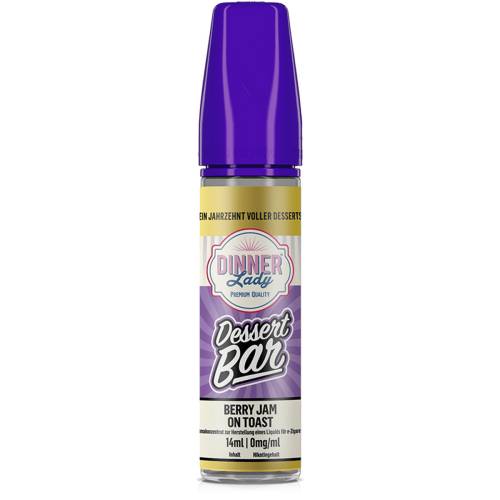 Mit Dinner Lady Berry Jam On Toast Aroma bringt die britische Traditionsmarke den unverwechselbaren Geschmack eines echten englischen Frühstücks direkt in den Tank deiner E-Zigarette. Schon beim ersten Zug entfaltet sich das Aroma von frisch geröstetem, leicht knusprigem Toast, überzogen mit einer süß-säuerlichen Beerenmarmelade. Warm, fruchtig und verführerisch – wie ein Frühstück an einem sonnigen Morgen in London.