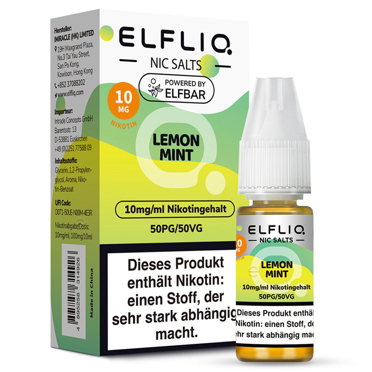 - Elfbar ELFLIQ Lemon Mint NicSalt Liquid: Zitrone & Minze – spritzig, frisch & belebend.