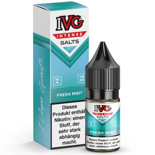 - IVG Intense Fresh Mint NicSalt Liquid: Klarer Minzgeschmack trifft auf kühle Frische und sanfte Süße – belebend, intensiv und angenehm weich im Abgang.