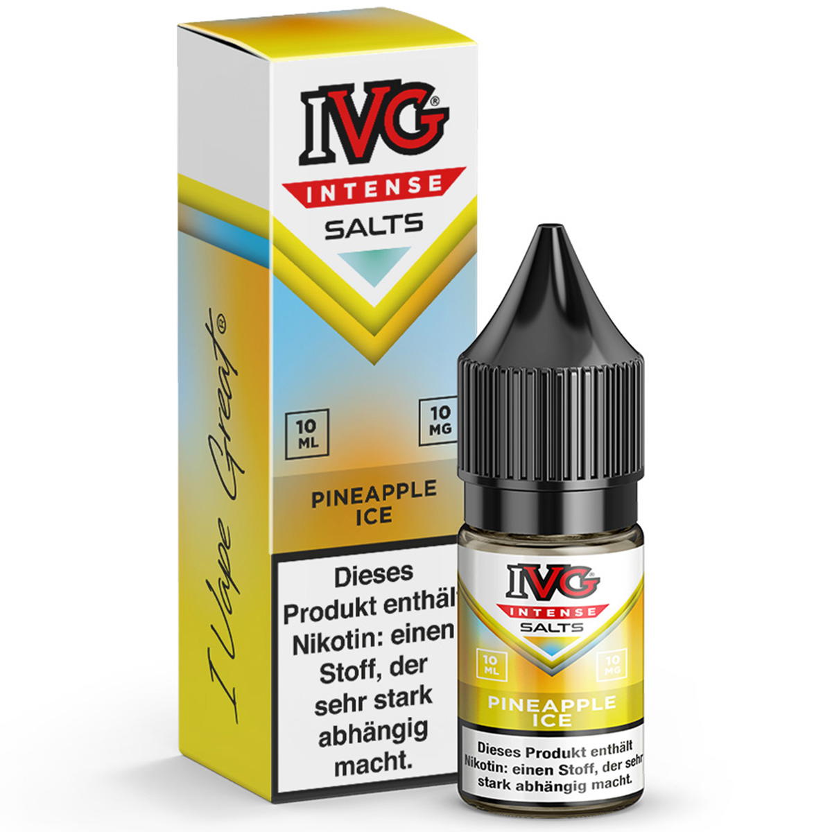 - IVG Intense Pineapple Ice NicSalt Liquid: Tropisch-süße Ananas trifft auf eine erfrischende Kühle – exotisch, saftig und angenehm ausbalanciert im Geschmack.