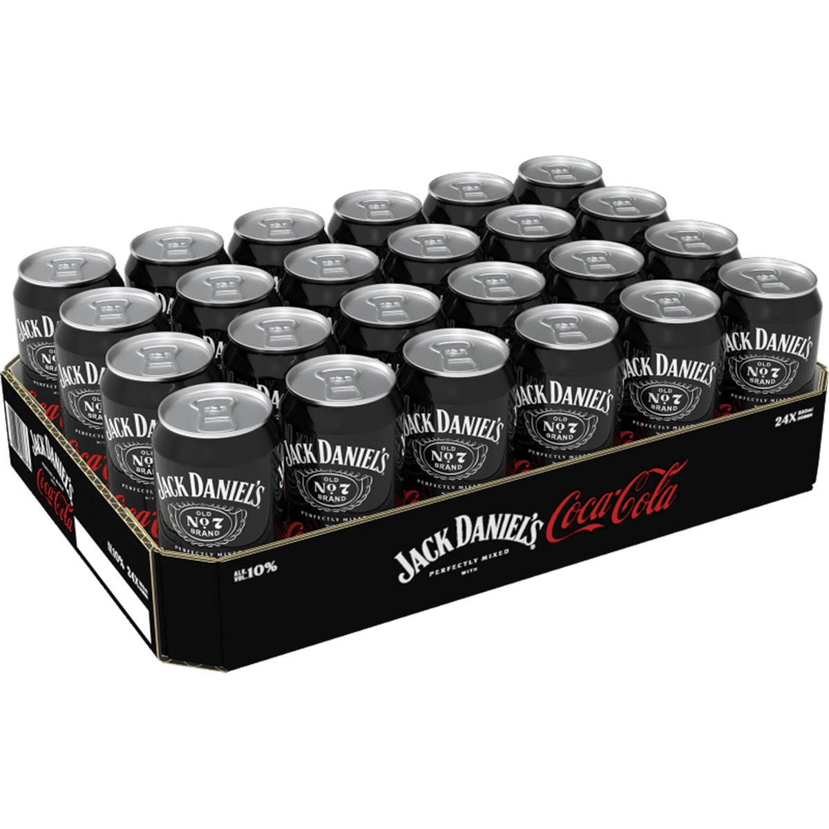 - Alkoholisches Mischgetränk mit Jack Daniel's Tennessee Whiskey (12,5%) und Coca-Cola (87,5%). Alkoholisches Getränk mit Kohlensäure. Entkoffeiniert.