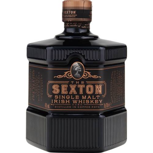 - The Sexton Irish Single Malt Whiskey: 100% irische Gerste, 40% vol., gereift in europäischen Eichenfässern mit Sherry-Einfluss, fruchtig, modern und kraftvoll.