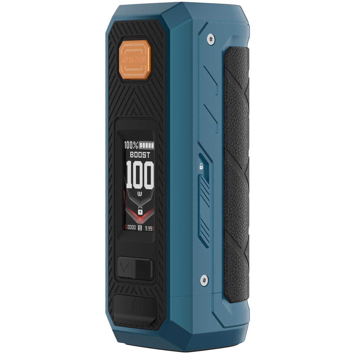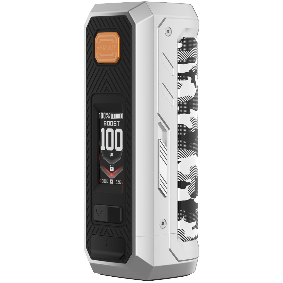 Beim Armour Ultra Mod trifft Ästhetik auf Funktionalität. Das Tank Protection Design schützt angeschlossene Verdampfer zuverlässig vor Stößen. Eine verstärkte 510-Verbindung sorgt für maximale Stabilität, während das metallische Cage-Frame-Design die Struktur stärkt, ohne zusätzliches Gewicht zu erzeugen. Wasserdichte Tasten, ein geschützter USB-C Port und die rutschfeste Oberfläche vollenden das Sicherheitskonzept. Jedes Detail ist auf Langlebigkeit ausgelegt – gemacht für die Ewigkeit.